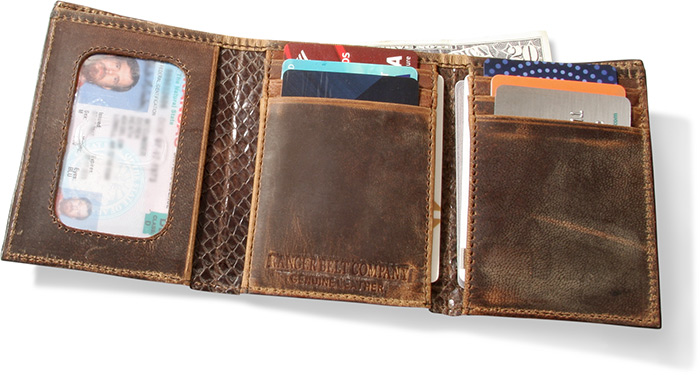 Built of genuine leather with detailed snakeskin pattern embossing, each has a smooth leather interior with nylon-lined pockets. Rugged as well as durable. Rich brown color with matching stitching. Designed in the U.S.A. and handmade in India.